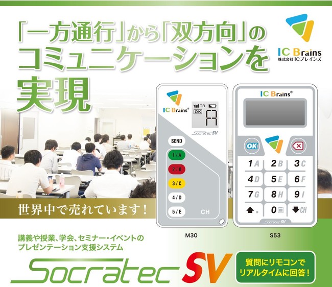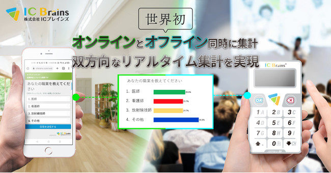 講演会などで使用するレスポンスアナライザー(クリッカー)の販売や運用を行っている株式会社ICブレインズ(本社:東京都品川区、代表取締役:工藤正一、以下ICブレインズ)は、コロナ禍での新しい講演会の形に対応するため全く新しいシステムを開発いたしました。実際の会場では専用端末で簡単に投票を、離れたところから視聴している人はスマートフォンで投票を行い、リアルタイムで同時に集計いたします。このように専用端末とスマートフォンなどのデバイスを併用して投票できるシステムとしては世界初となります(当社調べ)