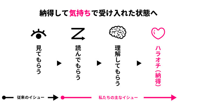 難しいサービスを一方的に「説明」しても、目的は果たせないと考えました。目指したのは読者の「ハラオチ」。情報を頭で理解するだけでなく、気持ちで受け入れ納得した状態です。