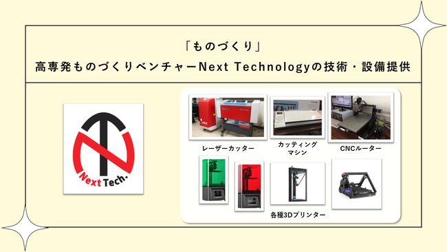 グッズ製造に関しては、高専発ものづくりベンチャーNext Technology全面協力の元、行います。