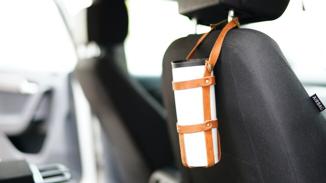 →ホルダーを使うことで持ち手ができます。持ち手が外れるからカバンや車のヘッドレストなどの様々なところにぶら下げることが可能です。