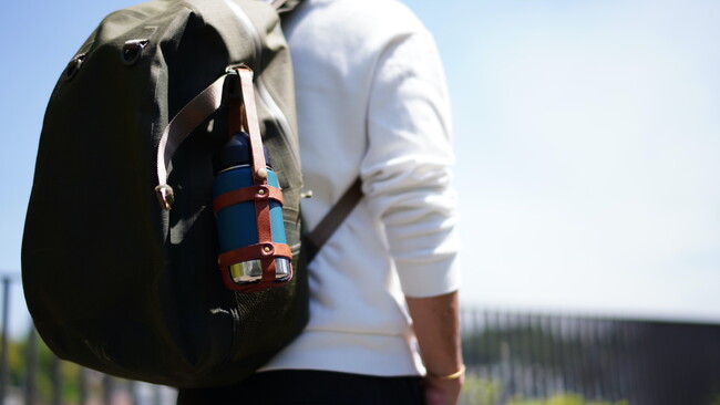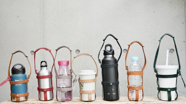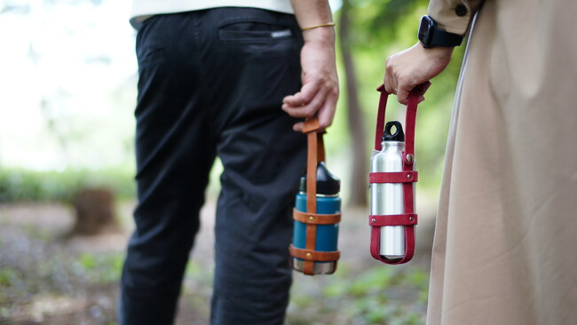 簡単な計測で、あなたのボトルにぴったりの本革ボトルホルダーを1点1点革職人がつくります。マイボトルをより快適に持ち歩けます。