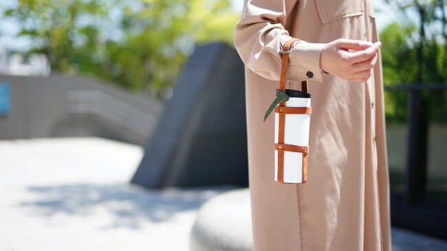 この商品は今よりもより快適にマイボトルを持ち歩けるように設計しました。またマイボトルを長い間持ち運べる様、飽きのこないシンプルなデザイン、サステナブルな素材である植物タンニンなめし革(牛ヌメ革)を使用しています。