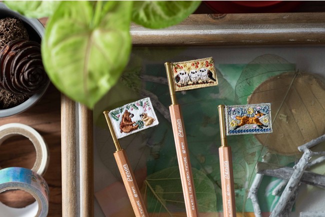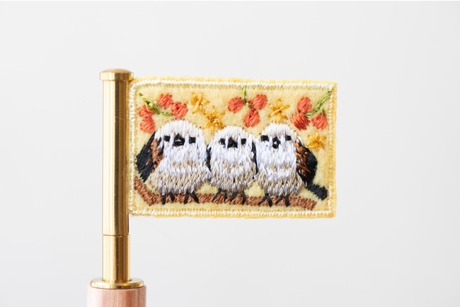 2021年9月のPENONブランドデビューと同時に誕生した、刺繍作家hinakaが手掛けるヒナトリエシリーズは、ペンのノック部分のフラッグにオリジナルデザインの刺繍を施したアイテムを展開しています。今回、PENON(ペノン)の数あるラインナップの中でも特に人気の高いアニマルシリーズに、新たに「シマエナガ」「キツネ」「クマ」の3つの新柄が仲間入りしました。