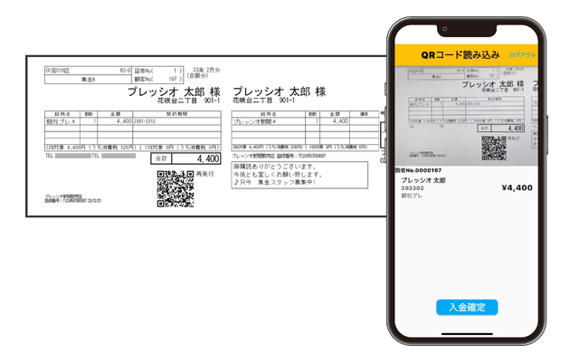 集金時の領収書のQRコードを専用の「集金アプリ」で読み込むだけで、瞬時にデータを取得でき、いままで手間のかかっていた領収書の突合せ作業が大幅に軽減化されるようになりました。