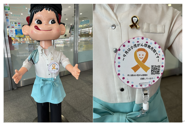 早稲田大学ビジネススクール(早稲田大学経営管理研究科、以後WBS)「企業経営と社会変革ゼミ」は、株式会社不⼆家(東京都文京区、代表取締役社長:河村宣行、以後不⼆家)、特定⾮営利活動法人キャンサーネットジャパン(東京都文京区、理事長:岩瀬哲、以後CNJ)と共同で小児がん啓発キャンペーンを行います。9月の「世界小児がん啓発月間」に際し、9月1日~9月30日の間、東京都にある不⼆家洋菓子店・不二家レストランの一部店舗にて、不⼆家のキャラクター「ペコちゃん」がCNJ制作のゴールドリボンのピンズを身につけます。
