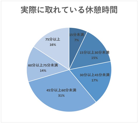 〇医師が実際に取れている休憩時間は「60分未満が7割」と、所定の休憩時間に足りていない状況