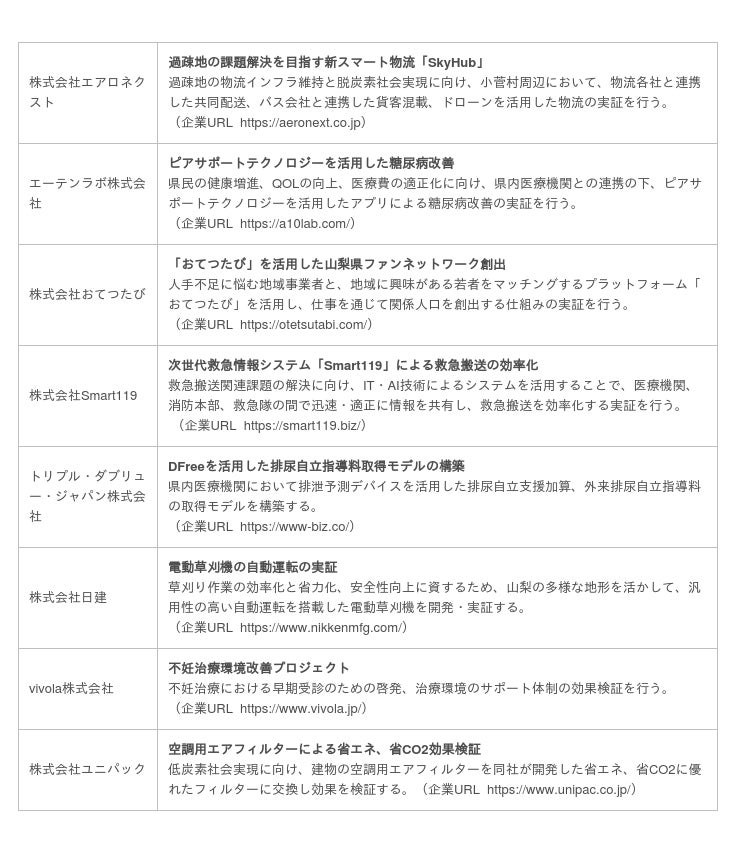 山梨県は、今年度より、山梨県全域を対象に最先端技術や新たなサービスの実証実験プロジェクトを支援する「TRY! YAMANASHI! 実証実験サポート事業※」を実施しています。