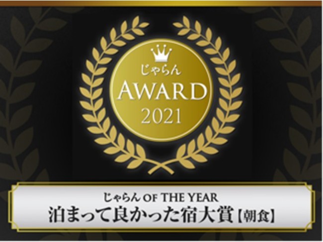「じゃらんアワード2021」とは、株式会社リクルートが運営する旅行サイト『じゃらんnet』、旅行情報誌『じゃらん』、観光に関する調査・研究、地域振興機関「じゃらんリサーチセンター」によって、2021年度(2021年4月~2022年3月)の1年間に顕著な実績を収めた宿泊施設を表彰するアワード。審査基準は『じゃらんnet』のクチコミ評点となっています。