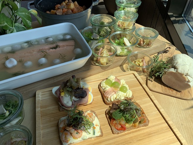 季節の野菜や旬の食材を使用したオリジナリティあふれるビュッフェに夏メニューが登場しました。北欧料理を中心とした冷温菜は蓋つきのガラス容器でのご提供。ピックアップしやすく、また衛生面を配慮したビュッフェは宿泊ゲストのみならず、地元の方々にも大変好評です。 *仕入れ状況により食材が変更となることがございます。