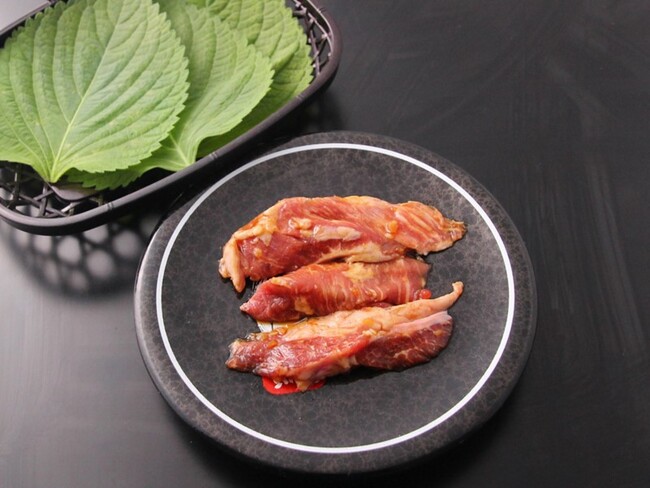 えごまの葉で焼肉をくるんで食べるのが韓国流!独特の風味がクセになります!