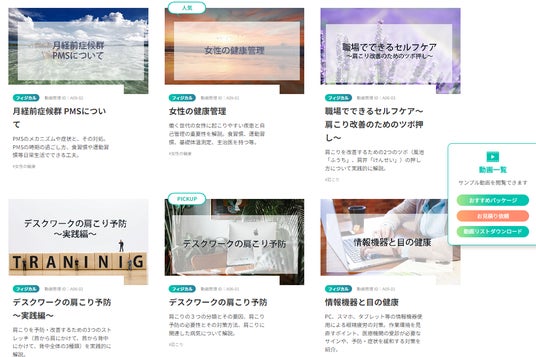 「LLax training(Web動画配信サービス)」はこれらの課題に対応し、運営を担う人事ご担当者さまの事前準備等のご負担を軽減し、従業員の皆さまにはそれぞれの都合にあわせて受講できるよう、ヘルスケア専門家が監修した約100本、約3分の短い動画をリーズナブルな価格でご提供します。