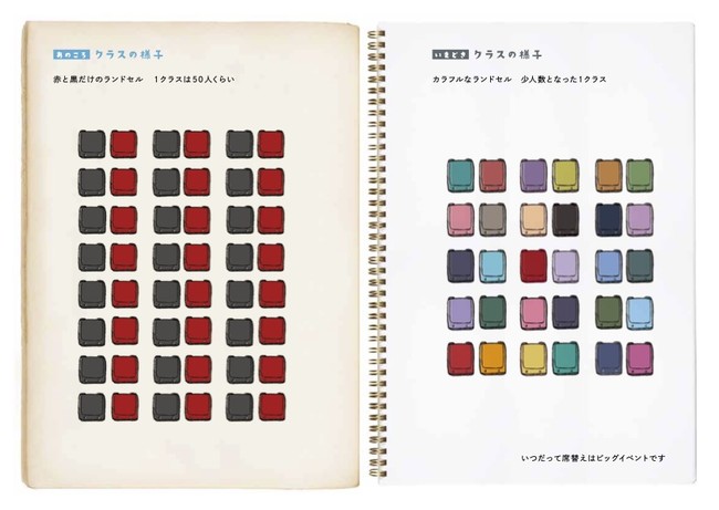 40代前半~50代後半の方なら懐かしい想い出が蘇るキーワード(4段式筆箱、切符切りのパンチ、ペンフレンド募集コーナー等)を散りばめた場面と、塾弁やテレワーク等の新たなキーワードを盛り込んだ今の生活場面が描かれる事で「昔は良かった」という懐古で終わらず、家族やご自身の「今」と「これから」を、やさしくゆったりと考える様な作風となっております。