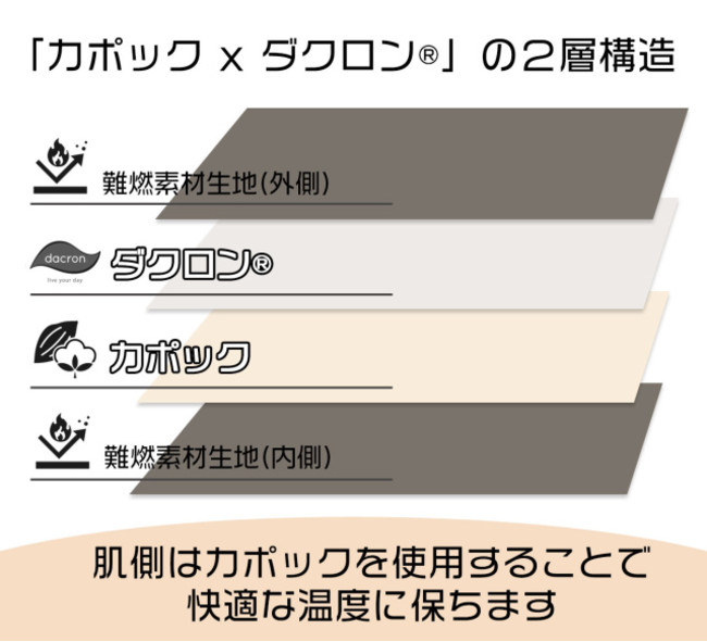 「カポック x ダクロン(R)︎」の2層構造でより快適に