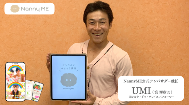 オンライン保育NannyMEとは子供のみまもりをして欲しい家族 ME(ミー)と子供をみまもるスキルをもったNanny(ナニー)を繋ぐサービスです。この度「シルク・ドゥ・ソレイユ」でパフォーマーとして活躍したUMIが、公式アンバサダーに就任いたしました。