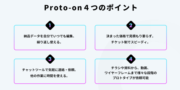 4.チラシや資料から、動画、ワイヤーフレームまで様々な段階のプロトタイプが依頼可能