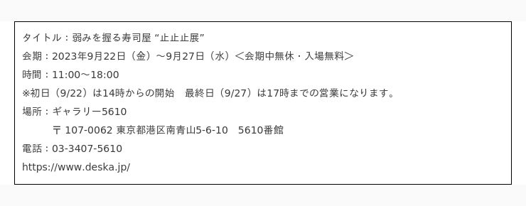 アートディレクター集団 “弱みを握る寿司屋” は、9月22日(金)~9月27日(水)の6日間にわたり「終わり」にまつわるデザイン展を、表参道にあるギャラリー5610にて開催いたします。