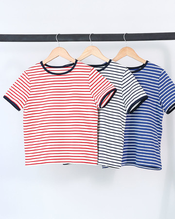 リンガーボーダートップスを3色展開で発売。