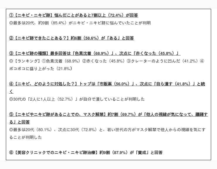 ニキビやニキビ跡に悩んだ経験、その対処法、マスク解禁で他人からの視線の感じ方などを調査しました。