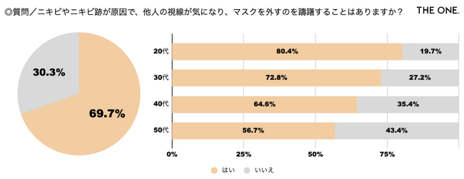 ・質問/ニキビやニキビ跡が原因で、他人の視線が気になり、マスクを外すのを躊躇することはありますか?(単一回答)