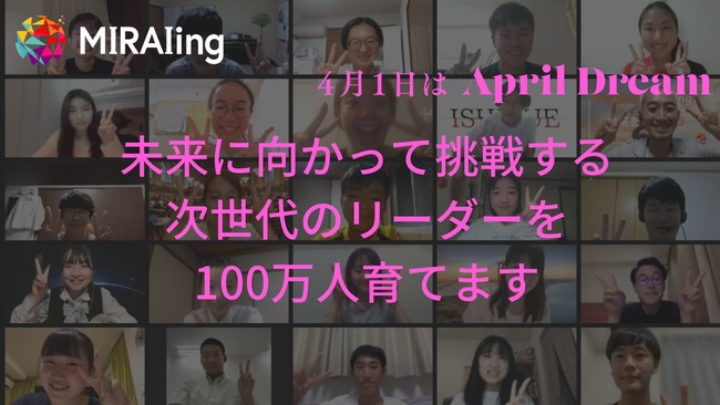 「固定観念・失敗に囚われず理想の未来をデザイン・具現化する、次世代の挑戦者たちを今育てる」ことをミッションに掲げる当社は、4月1日を夢を発信する日にしようとするApril Dreamに賛同しています。このプレスリリースは「MIRAIing」の夢です。