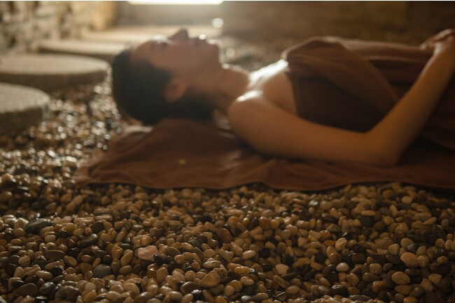 季譜の里で人気の「薬石蒸風呂(やくせきむしぶろ)」