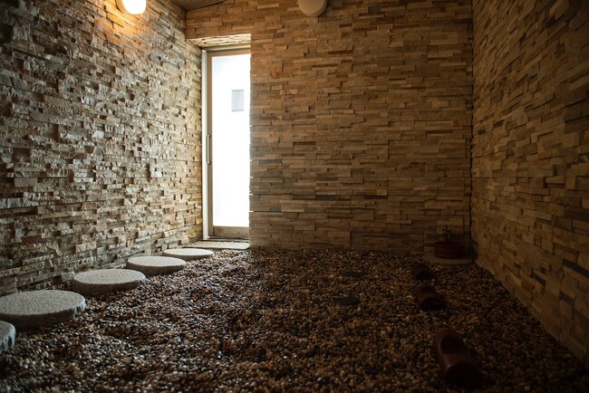 当館の温泉大浴場では、丁寧に造られた庭園と自然豊かな周辺の山脈を眺めながらゆっくりと浸かることができる、広い露天風呂を備えています。中でも最近人気を高めているのが、優しい低温(45℃)湯治サウナである「薬石蒸風呂」。適度に温められた天然鉱石の上に横たわり、温まりながら蒸気を全身で吸収できる湿式サウナです。