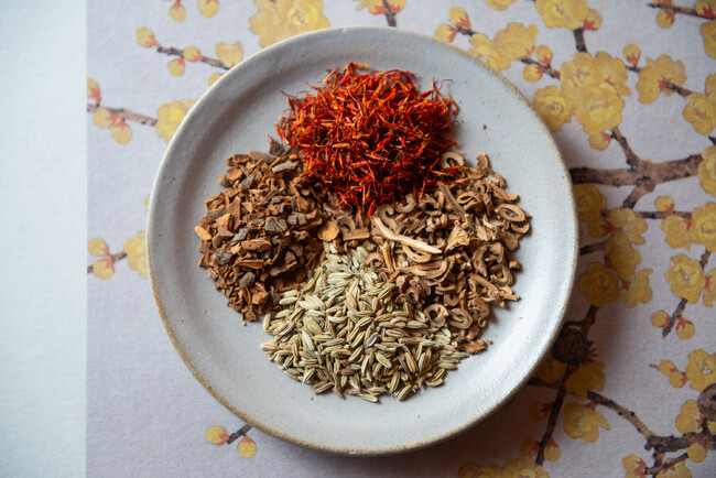 身体の調子は季節ごとに変わるため、薬酒に使われる薬草もフレーバーも季節ごとに変わっていく予定です。この冬は、冷えやすい身体を温めてくれるシナモンや生姜、落ちやすい免疫力をサポートしてくれる五加皮(ごかひ)やウイキョウを漬け込んだ薬酒を中心に取り揃えております。季譜の里の温泉で癒された後に、自家製の薬酒でさらに身体のバランスを整えていただけるオプションを提供しています。