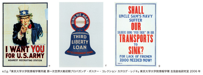 下図は第一次世界大戦下のアメリカの戦争ポスターです。選挙の定番色である赤と青はどの時代でも勝負色です。