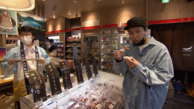 動画では東京の池袋駅近くにある「宮城ふるさとプラザ」でロケを実施。狩野さんは店内で懐かしいお菓子を見つけたり、牛タンを試食したりと楽しんでいる様子でした。