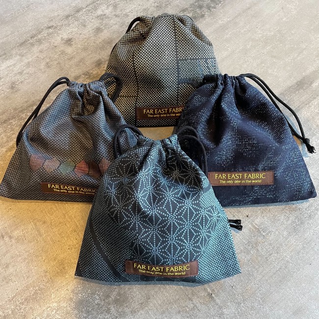 大島紬をはじめとした、着物のハギレ生地を利用し巾着を作っています。