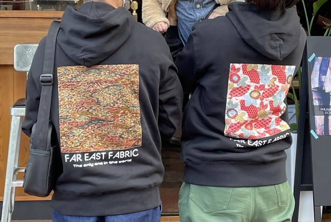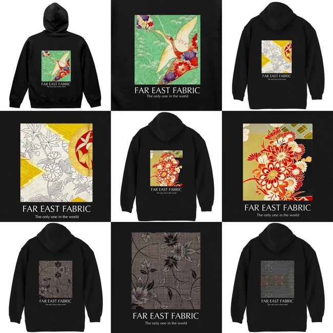 普段馴染みのあるパーカーやTシャツと一点物の着物生地を組み合わせたものはユニセックス商品として幅広い年齢層に対応が可能です。