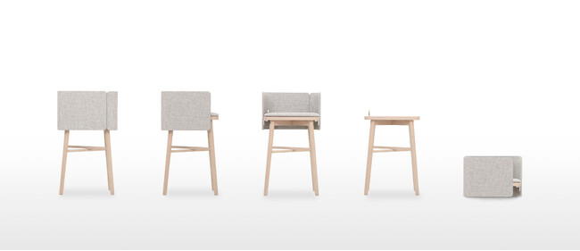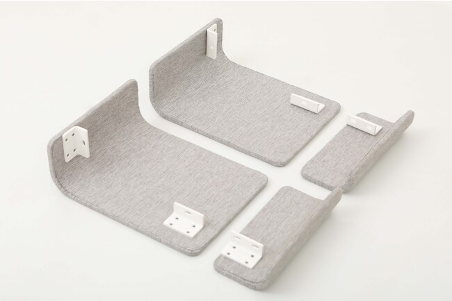 この仕様により、テーブルにぴたりと近づけて使用したり、四方を囲んでベッドとして使ったり、一部を開口して出入り口にしたりすることができます。また、脚を外せばソファ席や、畳などのシーンにも対応します。一般家庭はもちろん、レストランなどの店舗にも導入しやすい仕様となっています。