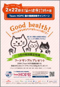 詳しくはTeamHOPE猫の健康診断特設サイト (http://teamhope-f.jp/222.html)を