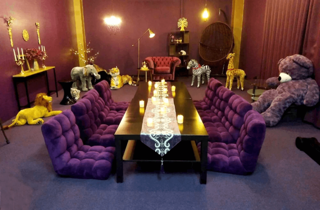 「ジャングル&宮殿」をテーマにしたキッチンスタジオ&プロジェクタルーム&パーティールーム