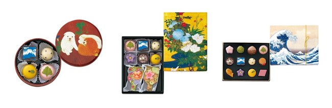 「甘味画廊」は“見て・食べて感じる日本”がコンセプトのブランドです。栗、小豆、紫芋など和の素材を使い、「栗饅頭」や「豆大福」、「練り切り」などの和菓子をミニチュアサイズで表現したチョコレートや、縁起物とされる羽子板をイメージしたチョコレートなど「和」をモチーフにした華やかなお菓子に仕上げました。またパッケージには、葛飾北斎や円山応挙など厳選した人気の日本画を採用。手に取ったときから召し上がっていただくまで、余すことなく「日本」を感じていただけるブランドです。