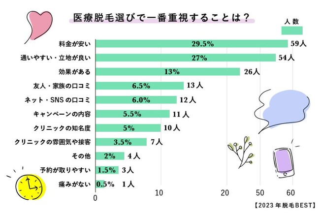 ■上記を含んだ詳細なアンケート結果は、弊社WEBサイト「脱毛BEST」に記載しております。