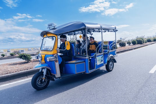 大洗駅隣で貸し出しをしている「トゥクトゥク」のレンタカーサービス