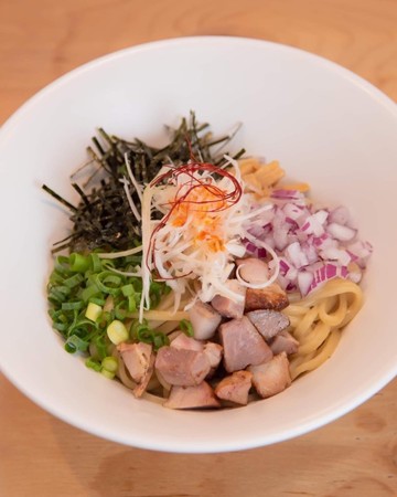 軍鶏、名古屋コーチン、丸鶏などを贅沢に使用し、八時間スープの表面が揺らぐ程度でじっくりと旨味を抽出して丁寧な清湯スープに仕上げている。海と山と湖で採れた日本、イタリア、フランス、モンゴルなどの数種類の塩を厳選して使用し、昆布、椎茸、鰹節などの旨味を重ね寝かし育て合わせることで、芳醇な香りと旨みが極限まで引き出され、鶏の旨みが鼻に突き抜ける珠玉の一杯!