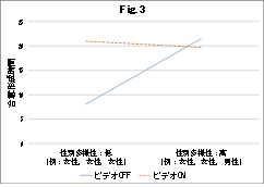 ビデオONのグループでは、対立回避の傾向が弱まる(B =-.852, p <.01)ことが
