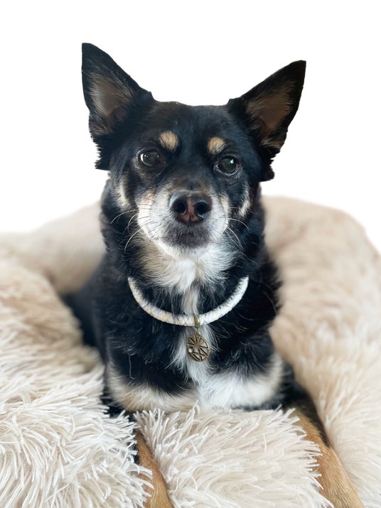 オーナーと愛犬を組みひもで繋ぐ犬用ネックレス。