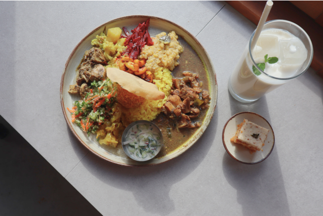 内容:スリランカカレーやデリ10種類以上の惣菜を盛り付けたランチプレート、選べるドリンク、ミニデザートのセット(ドリンク:自家製チャイ、オリジナルクラフトコーラ「森のコーラ」、スリランカビール「ライオンラガー」など)