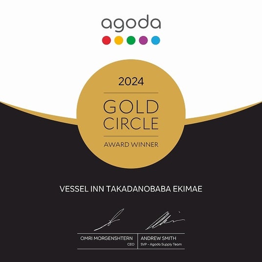 「Agoda GOLD CIRCLE AWARD 2024」は、ホスピタリティ業界においてトップクラスのサービスを提供しているホテルに贈られる賞です。「優れたサービスの提供」「競争力のある料金の設定」「在庫状況の迅速な更新」の実現によって卓越した実績を示したパートナーを表彰するものとしています。