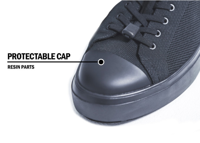 爪先部分の耐久性を向上させ、撥水性を向上させる為に樹脂パーツを採用。雨の日も爪先が染みづらく、快適に過ごせます。