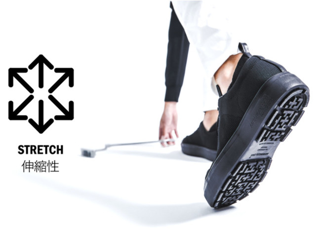 編み目を持つニット素材は通気性が抜群。シューズ内に湿気を溜め込むことなく、蒸れを防ぎ、常に快適なコンディションを保ちます。足の裏やつま先は、体の中でも汗をかきやすく、1日に両足で約200mlの汗をかくと言われています。そのケアを怠れば不衛生なだけでなく、靴そのものの寿命も縮めてしまいます。衛生的でいて、経済的でもあります。シューズにニット素材を採用することは、実に理に適った選択と言えます。