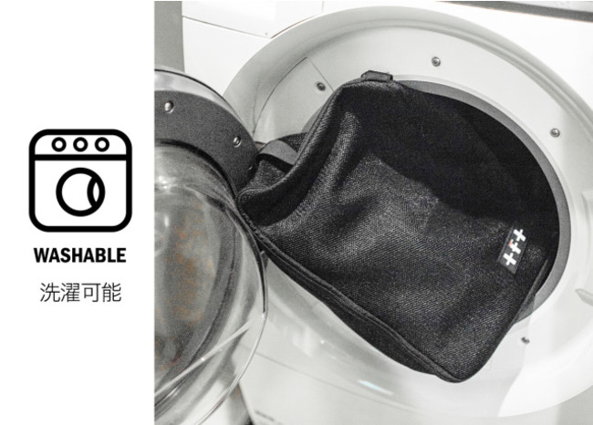 そして、本製品には洗濯する際にシューズを入れる専用ランドリーバッグが標準装備。こちらはランドリーバッグとしてだけでなく、普段はシューズの収納や持ち運び用ケースとしても使用できるため、出張や旅行にも最適。「+F+(エフ)」のシューズであれば洗ってもすぐ乾くので、旅行先での洗濯も可能です。