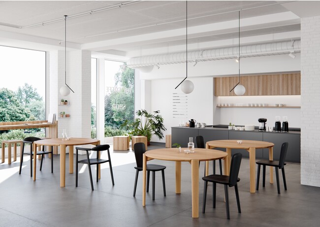 新しく発表されたテーブルのひとつは、ガムフラテージがデザインした飛驒産業製のMiauテーブルです。昨年同シリーズのMiauアームチェアを発表し、デンマークの伝統とデザインを再解釈したものとして高く評価されました。