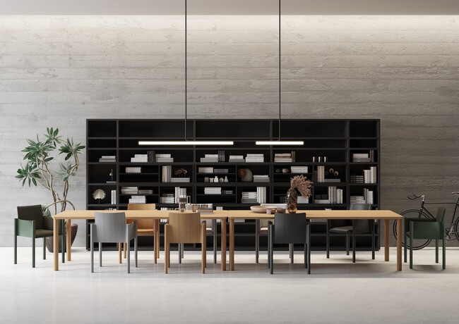 パリを拠点に活躍する兄弟デュオ、ロナン&エルワン・ブルレック(Ronan & Erwan Bouroullec)とコペンハーゲンを拠点に活躍するデュオ、ガムフラテージ(GamFratesi)がデザインした新たなテーブルは、卓越した技術で磨かれた無垢材は触れれば心地よく、まるで木と会話をしているような時間が流れます。一方、積層合板を用いたテーブルは2種類の木材が積層されることで小口に美しいストライプが見て取れ目を楽しませてくれます。デザイナーにして「木に対する接し方に伝統と情熱が感じられる」と言わしめた作品をぜひ体感して下さい。