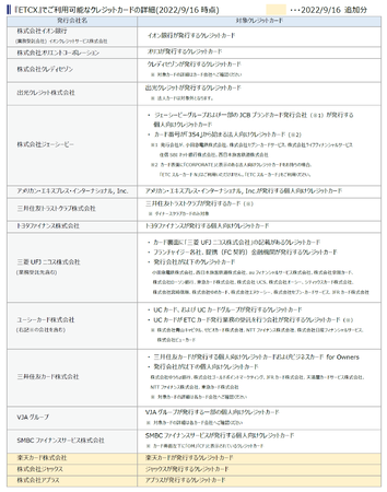 『ETCX』では、今後もご利用可能なカードおよびご利用可能な店舗・施設を拡大し、ETC技術を用いた便利で快適な社会の実現を目指して邁進してまいります。