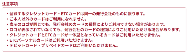 ご利用可能なクレジットカードの詳細につきましては、『ETCX』サービスサイト内「ご利用可能カード一覧」をご確認ください。