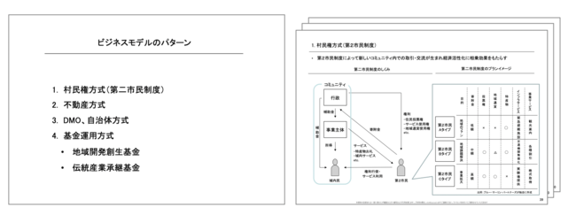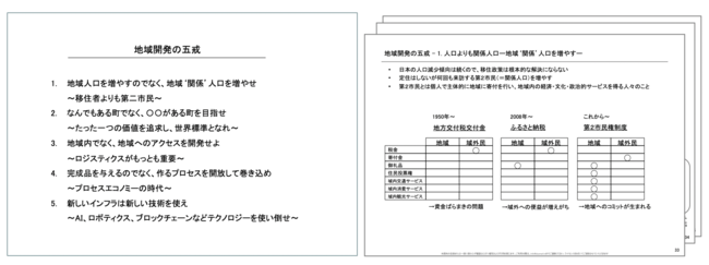 地域が補助金に頼らない形で原資を獲得し、持続的に豊かになる為のビジネスモデルについて提言をしています。具体的に地域開発を実行する際に組むべきビジネスモデルはどのようなものか、長期的に開発予算が確保できるものに絞って紹介しています。